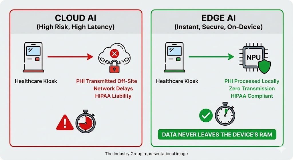 If a patient speaks their symptoms into a kiosk or uses facial recognition to check in, and that data is transmitted to an external server for processing, you have just introduced latency, bandwidth strain, and a complex web of Business Associate Agreements (BAAs) into your workflow.
