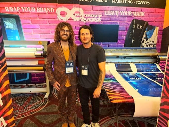 - Ethan Smith and Corey Gelb present the ATM digital topper system at the ATM Merchant Systems exhibit.
