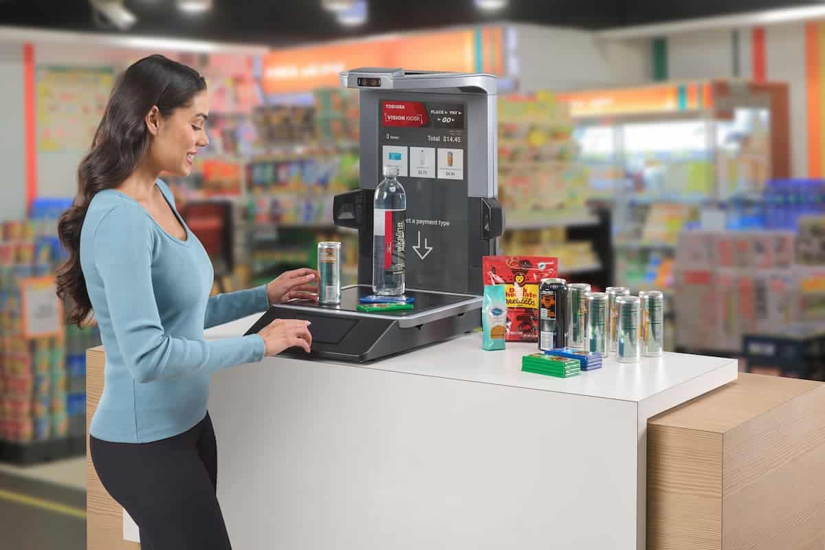 Toshiba MxP — Booth 3623 at NRF — This is Toshiba’s MxP Vision Kiosk, a new concept for the grab-n-go market e.g. convenience stores, hotels, airports and venues. MxP Vision Kiosk shrinks the footprint of traditional self-checkout systems while maintaining security, reducing touchpoints, and providing a modern checkout experience. No barcodes, no scanning – just seamless, automatic recognition powered by advanced sensor fusion and computer vision. This innovative solution transforms the checkout process into a fast, effortless experience, making it as simple as “place, pay and go. This year, we will put MxP Vision Kiosk on full display, and will use NRF as a platform to announce it as available to the general market.