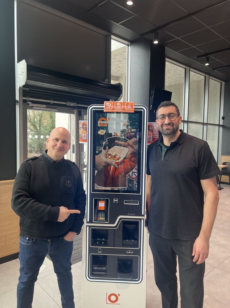 During a recent visit, Acrelec CEO Bruno LO-RE connected with local franchisee seghrouchni farid to see the installation firsthand. The restaurant features our C27 kiosks with integrated card readers alongside a compact Glory coin recycler — a seamless setup designed to optimize both digital and cash transactions in a compact footprint.