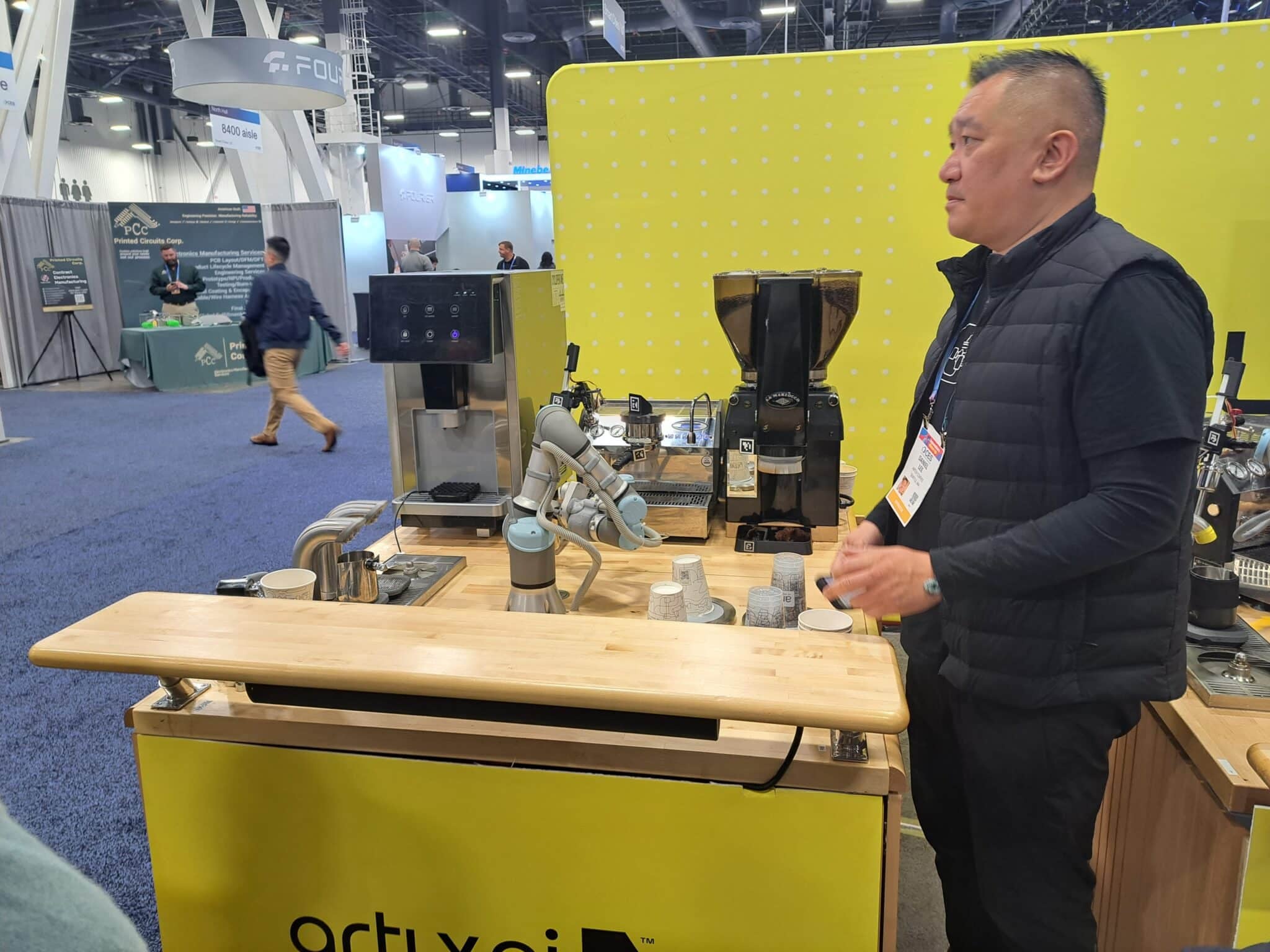 Artly AI, a manufacturer of AI enabled robots for various service tasks, presented its Artly Barista Bot, featuring an AI-powered robotic arm that functions as a barista, making various coffee drinks. The robot was developed to combine robotics with artistic coffee-making skills, using deep learning and motion capture to learn its techniques by observing human baristas.