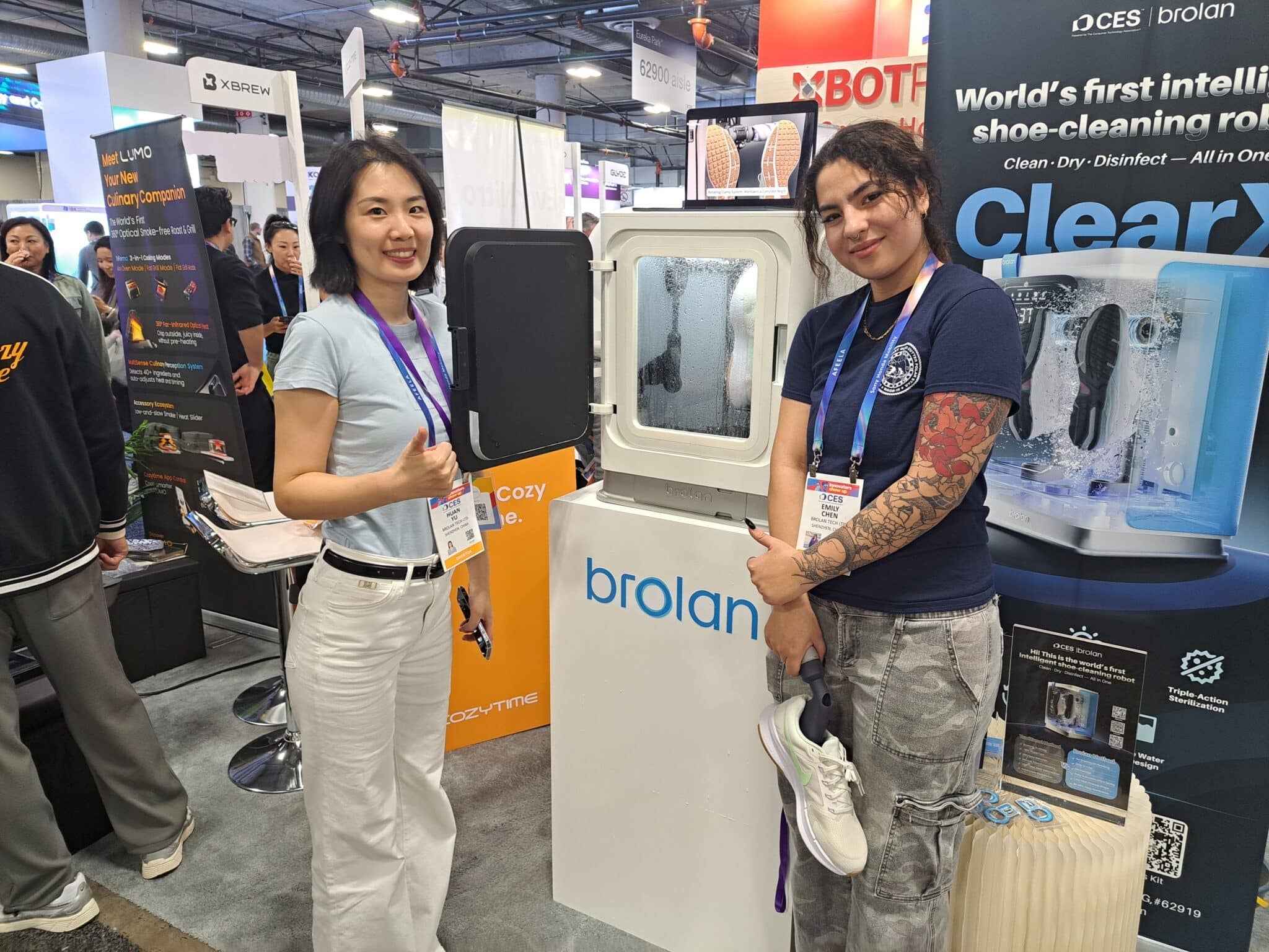 - Huan Yu and Emily Chen present the Brolan shoe-cleaning robot.