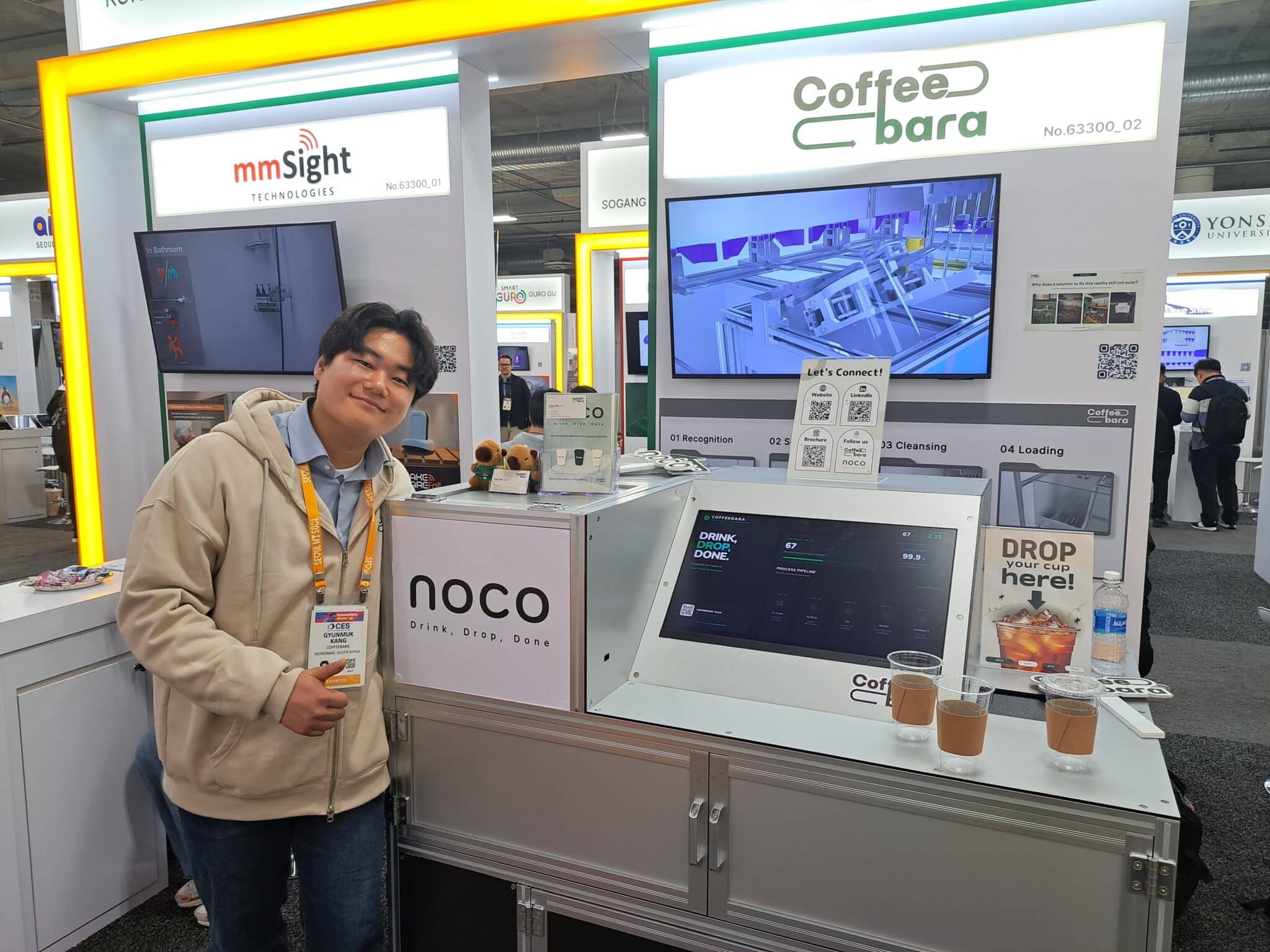 - Gyunmuk Kang presents the coffee cup recycling solution at the Coffee bara exhibit.