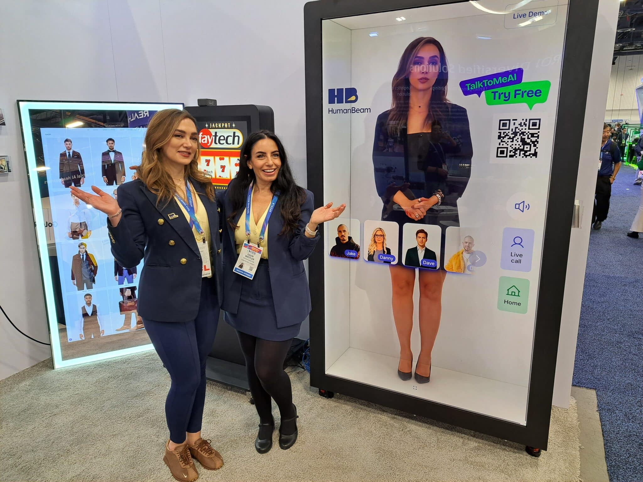 - Parisa Alinasab and Galya Westler introduce the HighBeam immersive 3D virtual assistant at the Faytech exhibit.