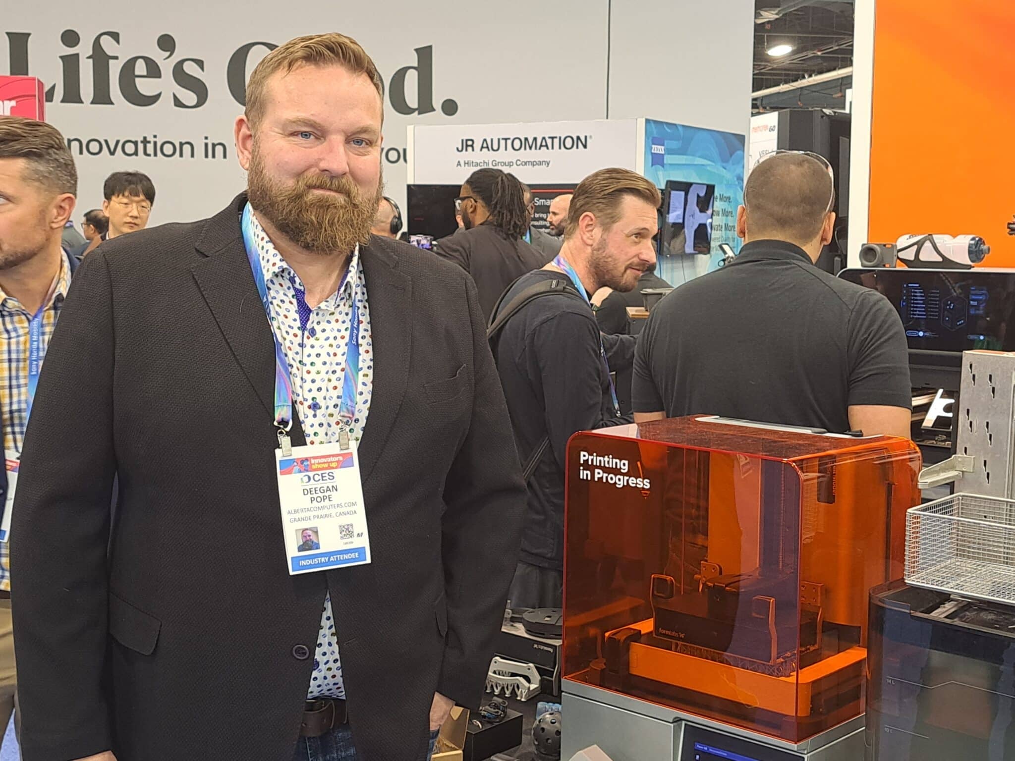- Deegan Pope presents the Form 4 next-generation resin 3D printer at the FormLabs exhibit.