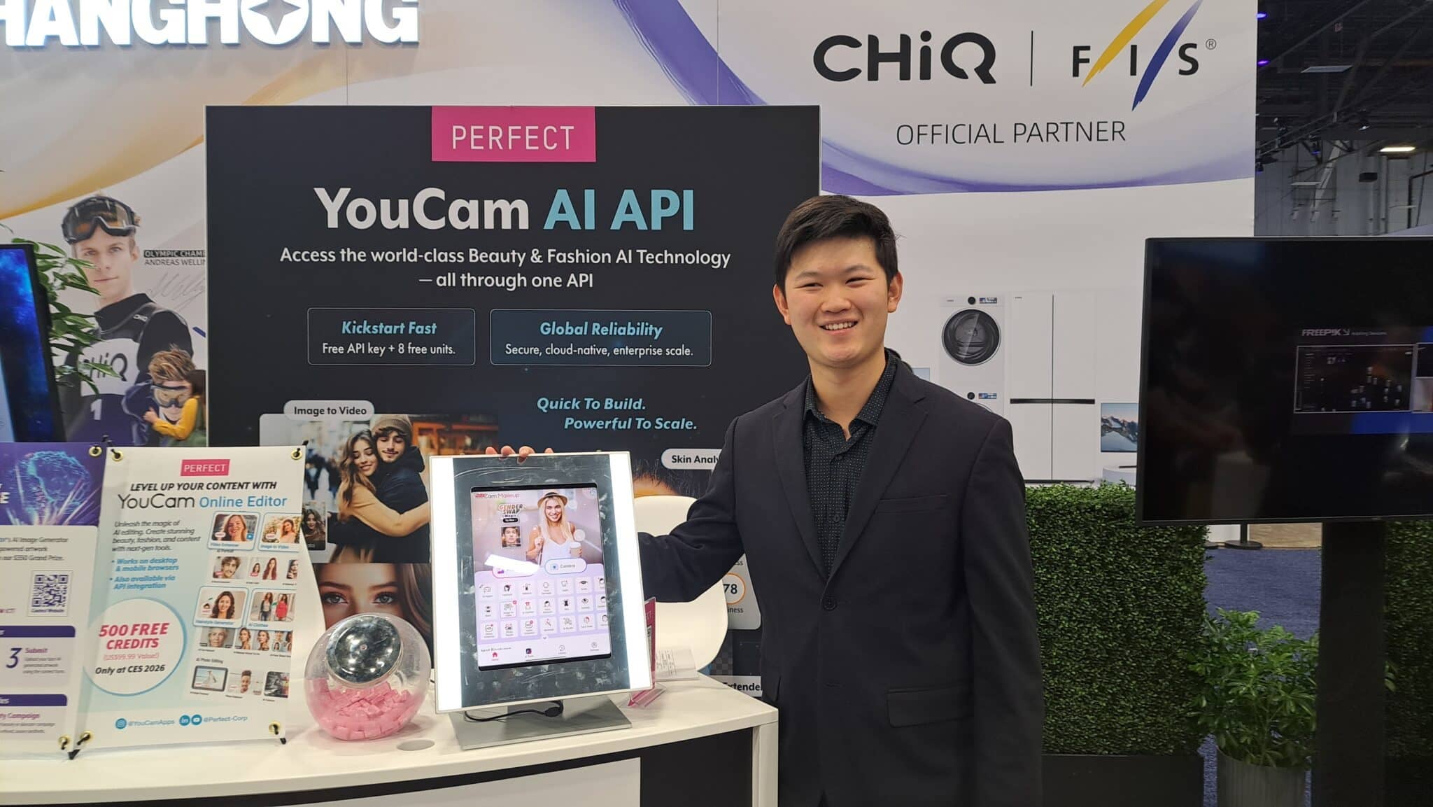 - Nathan Liu presents the YouCam AI agent at the Perfect Corp. exhibit.
