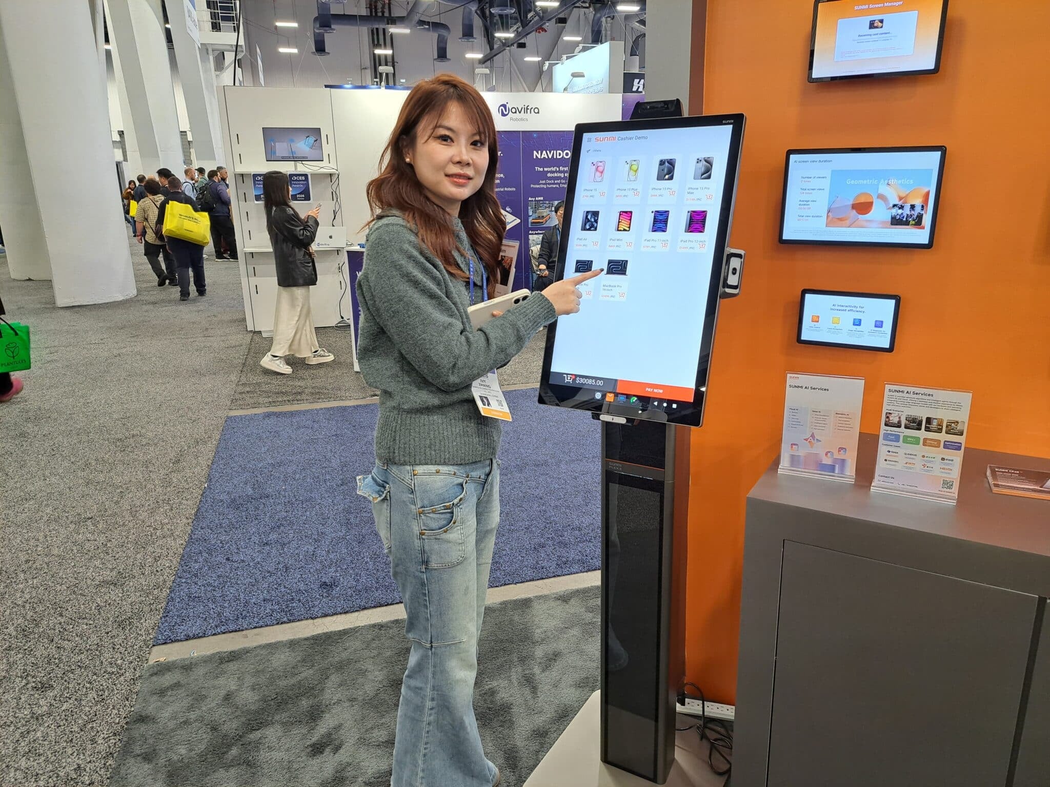- Ivy Zhang presents the Flex 3 Android-based, self-service kiosk at the Sunmi exhibit.