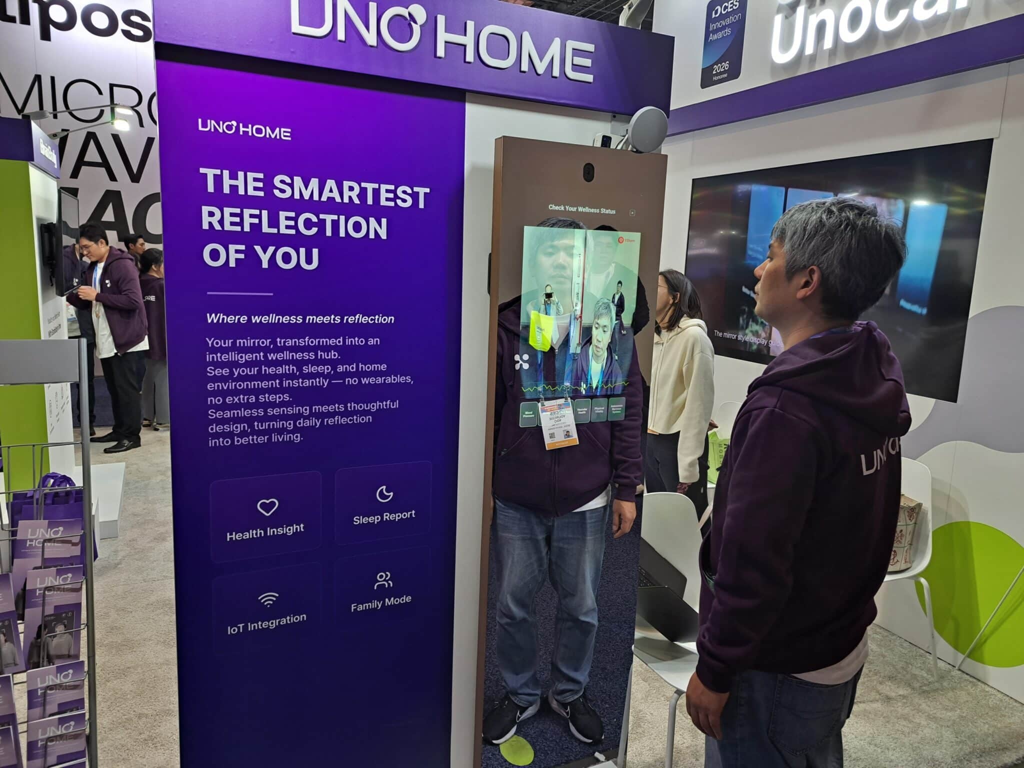Uno Home offers an AI powered smart mirror that scans a person’s face and provides personalized health insights for consumers. A facial recognition camera enables the system to measure heart rate, blood pressure and stress level.