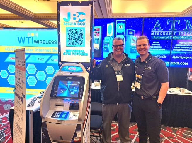 - Ethan Smith and Corey Gelb present the ATM digital topper system at the ATM Merchant Systems exhibit.