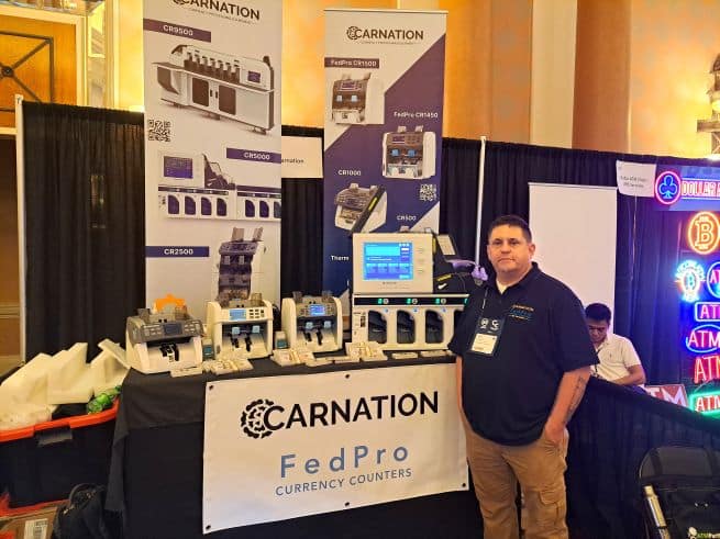 Carnation, a Chicago based provider of currency counter equipment, presented its bill and coin counter machines, mixed money counters, counterfeit bill detectors and check scanners.