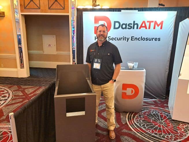 - Derek Polk presents security enclosures at the Dash ATM exhibit.