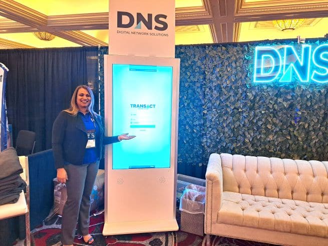 - Natasha Evangelister presents the Transact dashboard at the DNS exhibit.