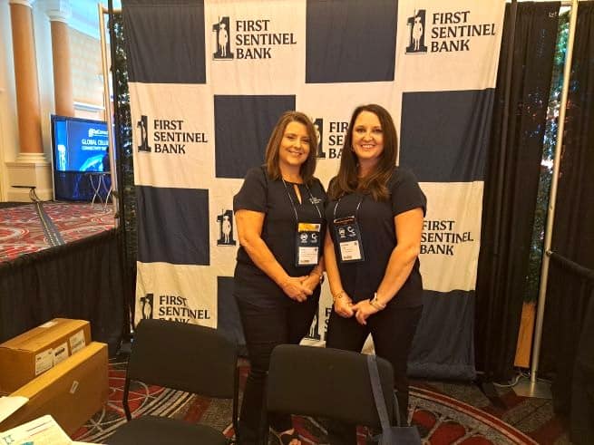 - Carey Watters and Samantha Crigger introduce attendees to First Sentinel Bank’s ATM cash replenishment program.