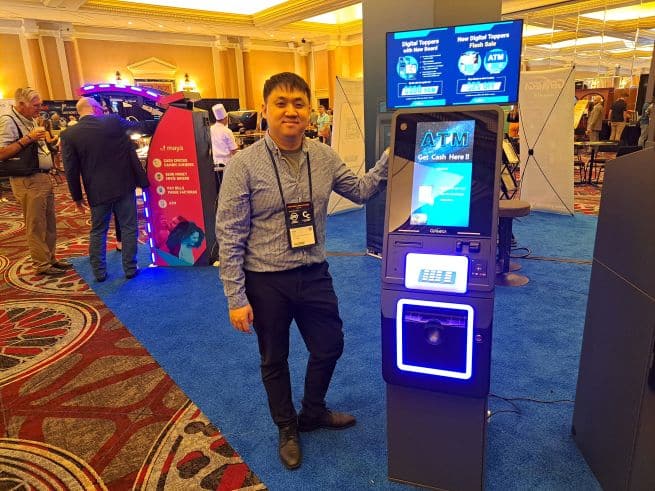 - Ben Choi presents the NOVA retail ATM at the Genmega exhibit.