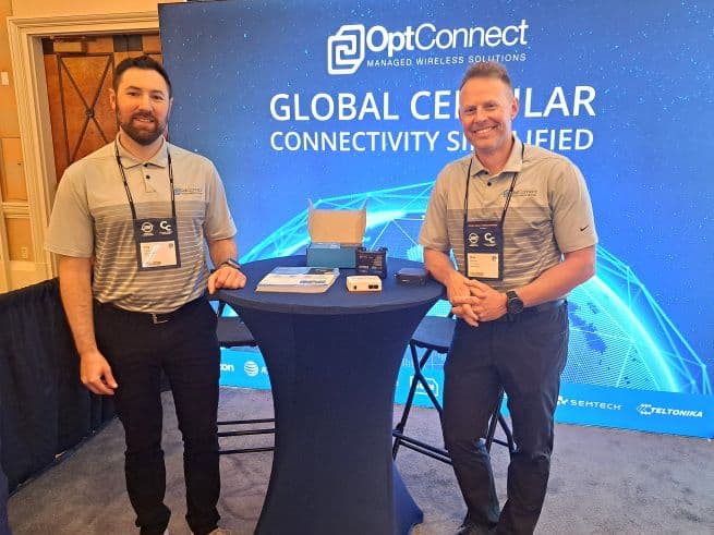 - Tony Trejo and Matt Warner present connectivity solutions at the OptConnect exhibit.