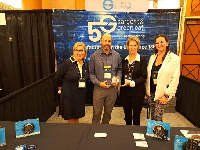 - Elizabeth Cox, Rob Turbeville, Roxie Rudl and Catherine Hauck present the C series lock at the Sargent & Greenleaf exhibit.