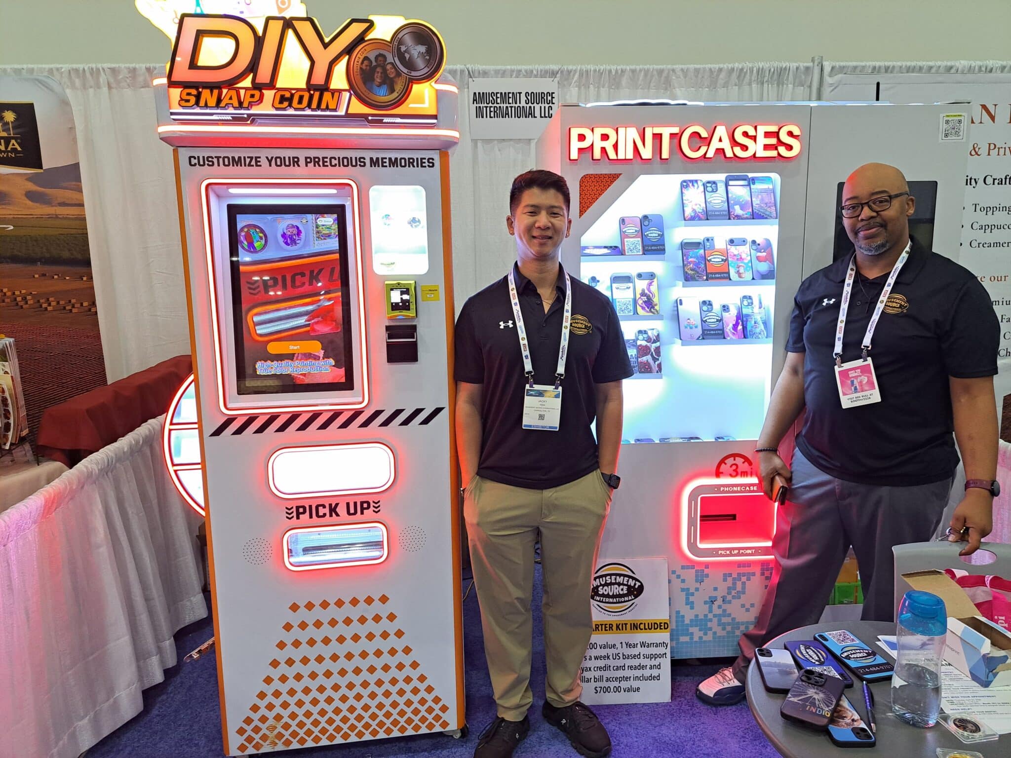 Amusement Source International, a manufacturer of amusement games and a first-time NAMA exhibitor, showed a UV printing machine that allows a user to print an image on a card. The user can scan a QR code to find a design to print.