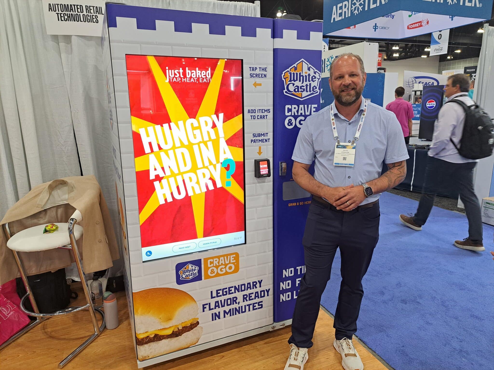 Automated Retail Technologies, a manufacturer of hot food kiosks, highlighted its White Castle Crave & Go branded Just Baked machines offering White Castle Sliders.