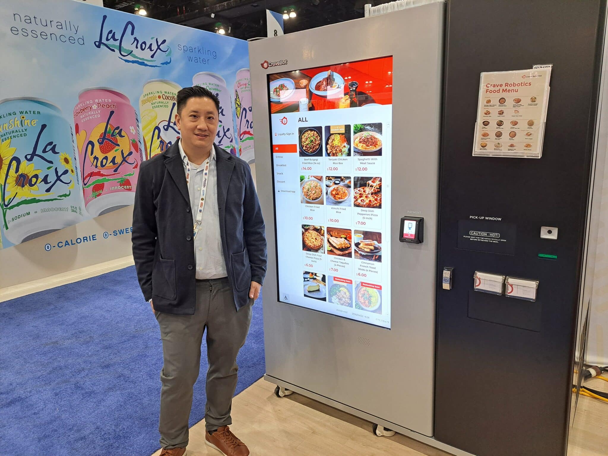 Crave Robotics Inc., showed its Hot Food Vending Kiosk, offering ready-to-eat, precooked frozen meals. The machine features 140 individual slots and serves hot food in three minutes or less.