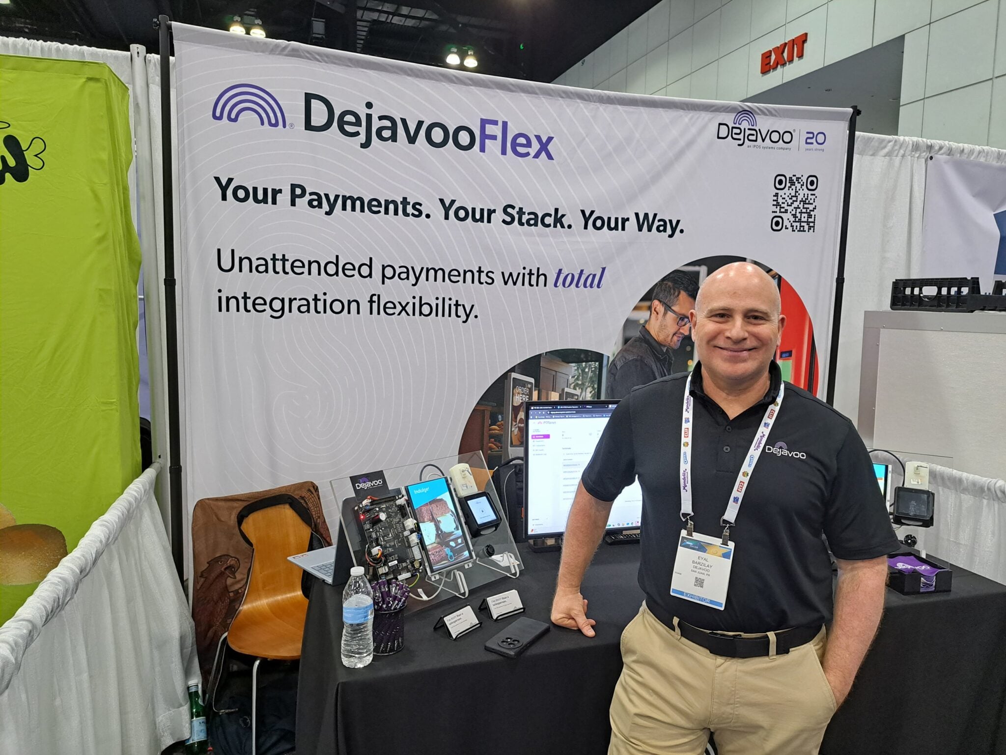 - Eyal Barzilay presents payment terminals at the Dejavoo exhibit.
