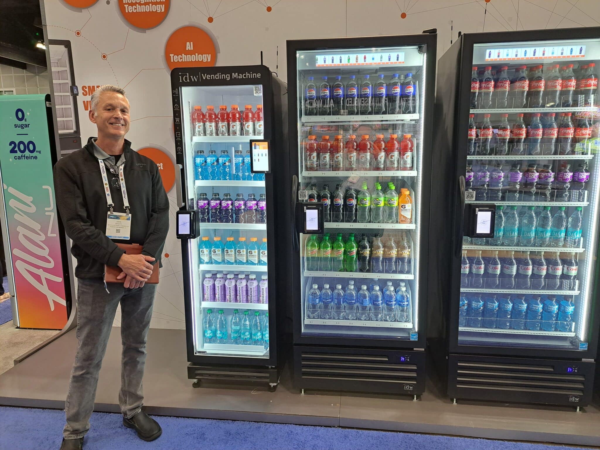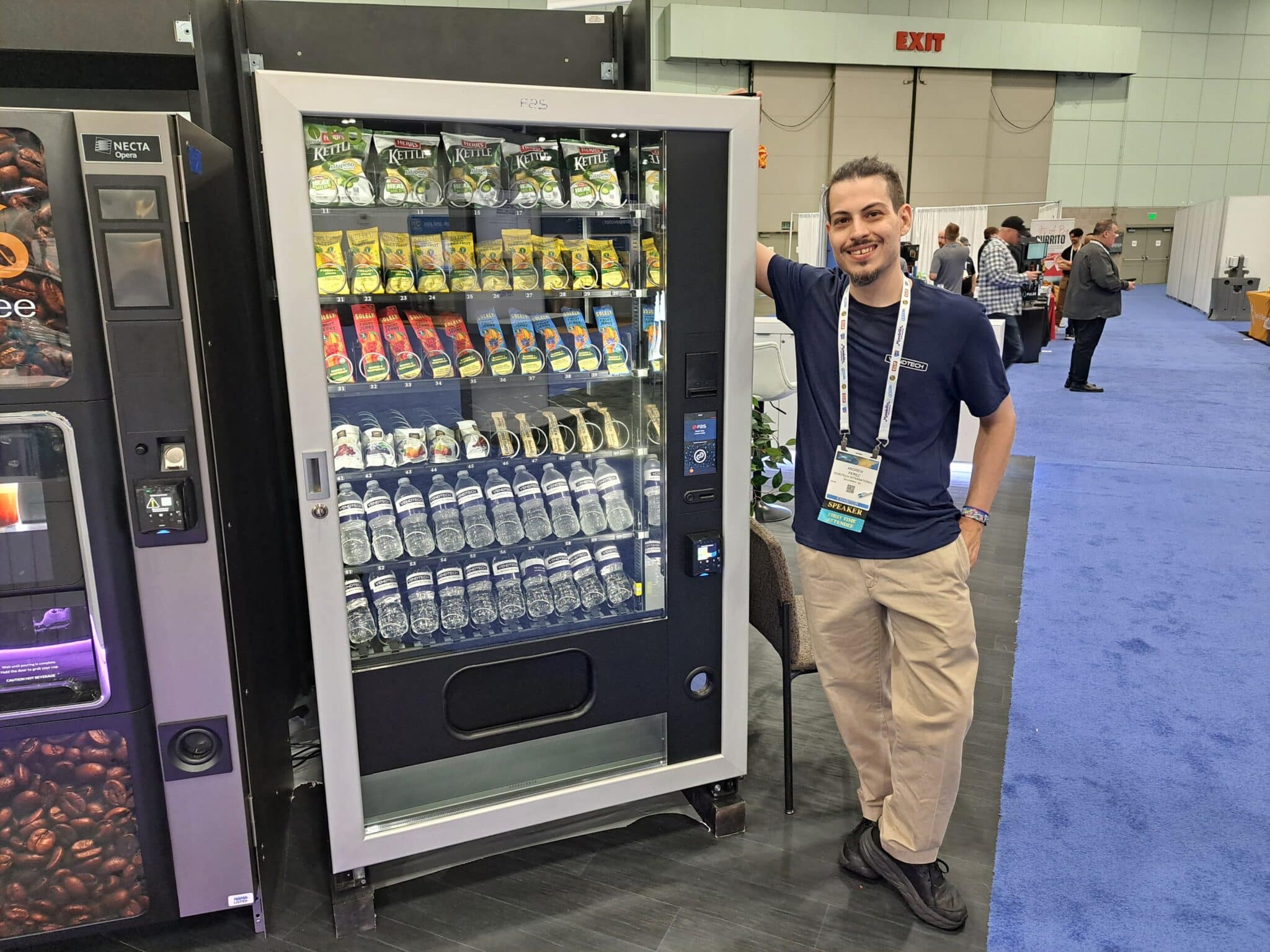 - Equipment and payment technology: kiosks, card readers, smart coolers, combination vending machines. These include a new glassfront spiral driven machine with pullout trays and a swappable cooling deck.