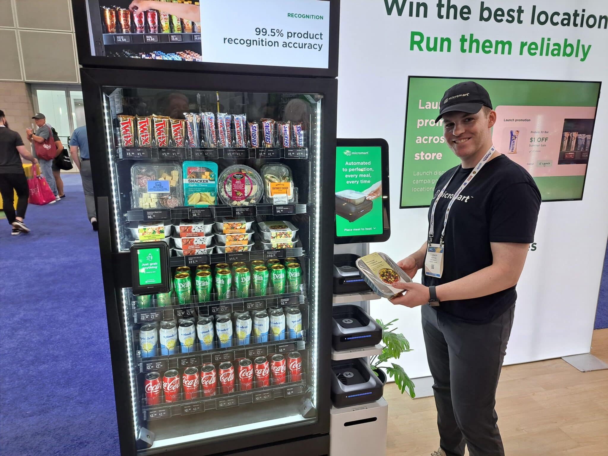 - Connor McPhail introduces the self-serve merchandiser and a meal cooker at the micromarket exhibit.