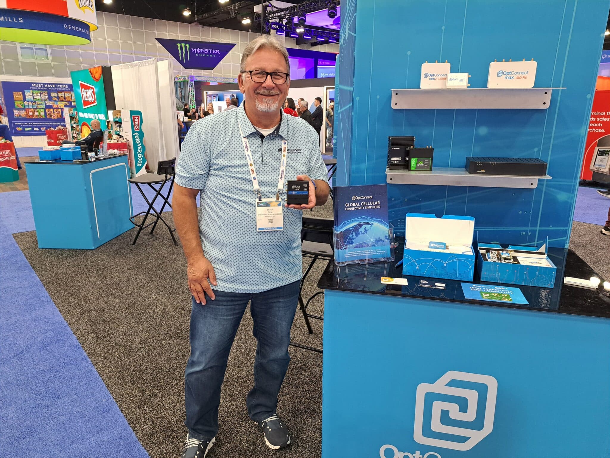 - Brian Gill highlights the fuse one 4G LTE Cat 4 router at the OptConnect exhibit.