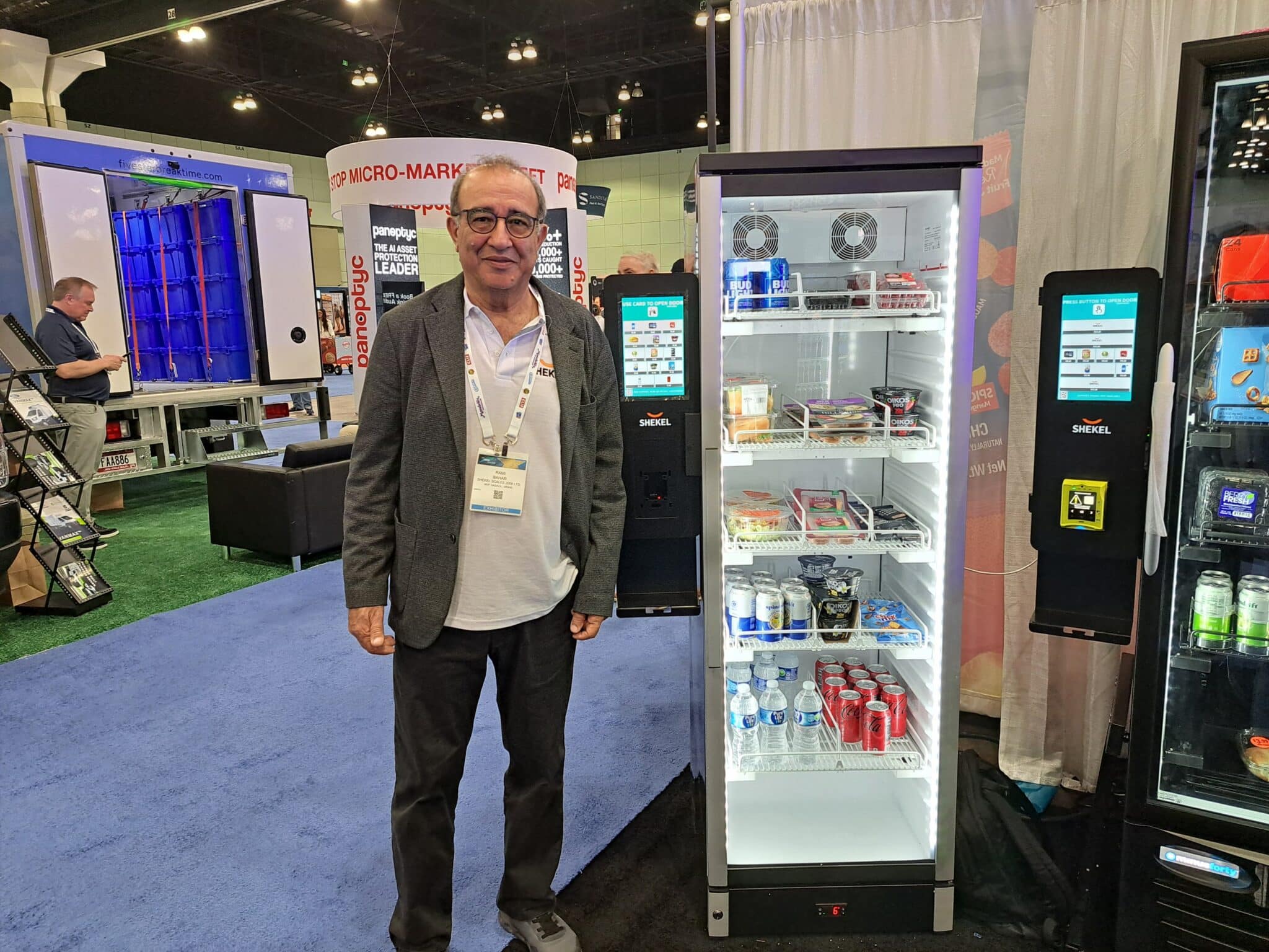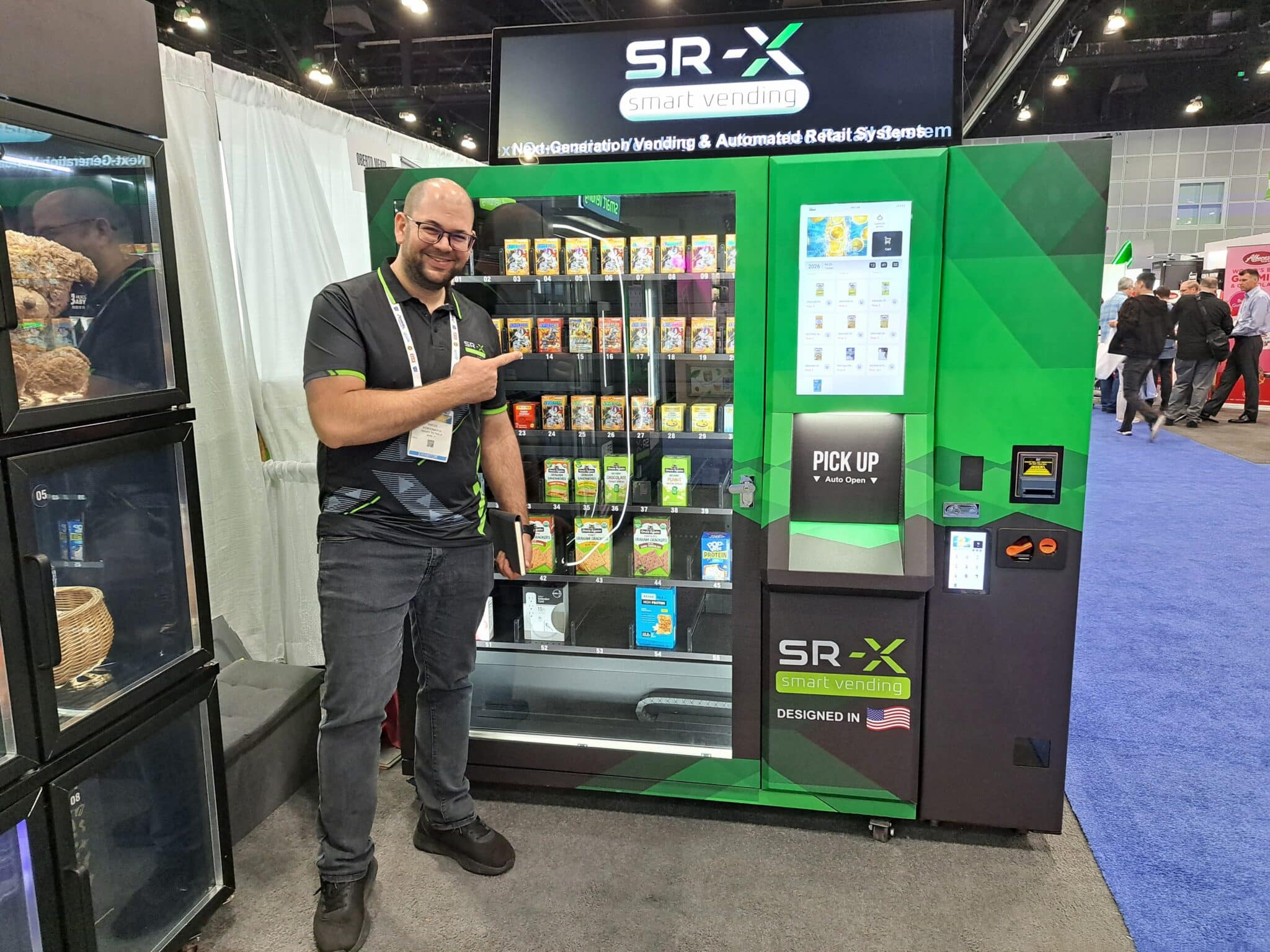 - Nikos Kokkinakis exhibits an automated store at the SR-X Vending exhibit.