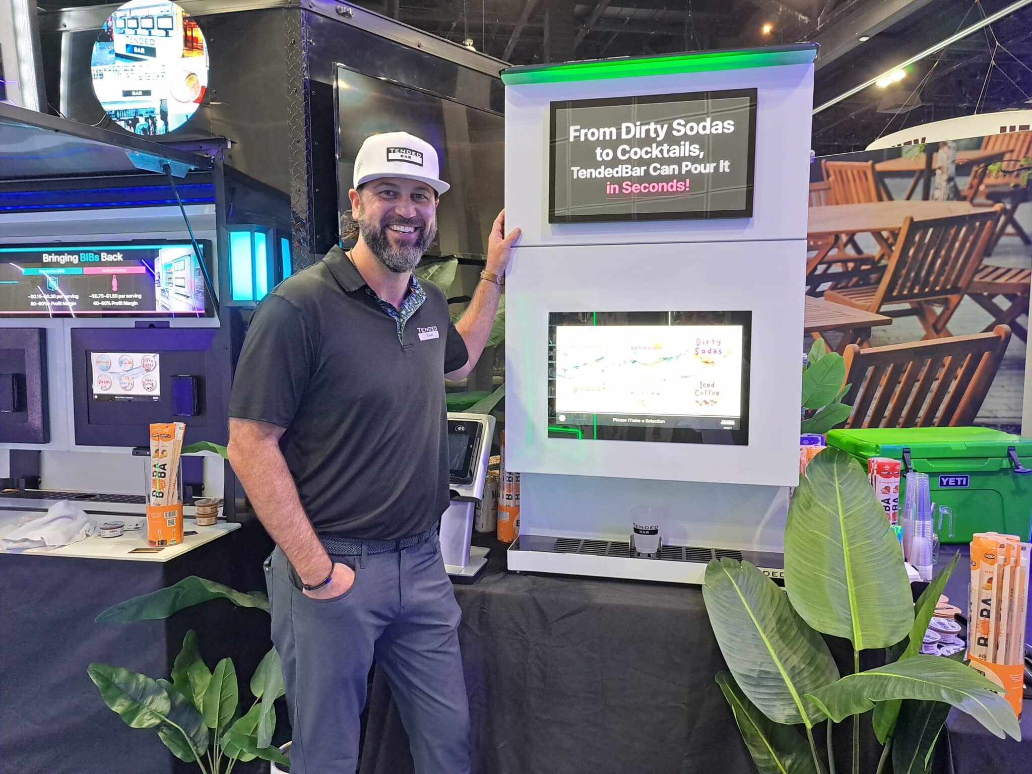 - Justin Honeysuckle presents the automated beverage dispenser at the Tended Bar exhibit.
