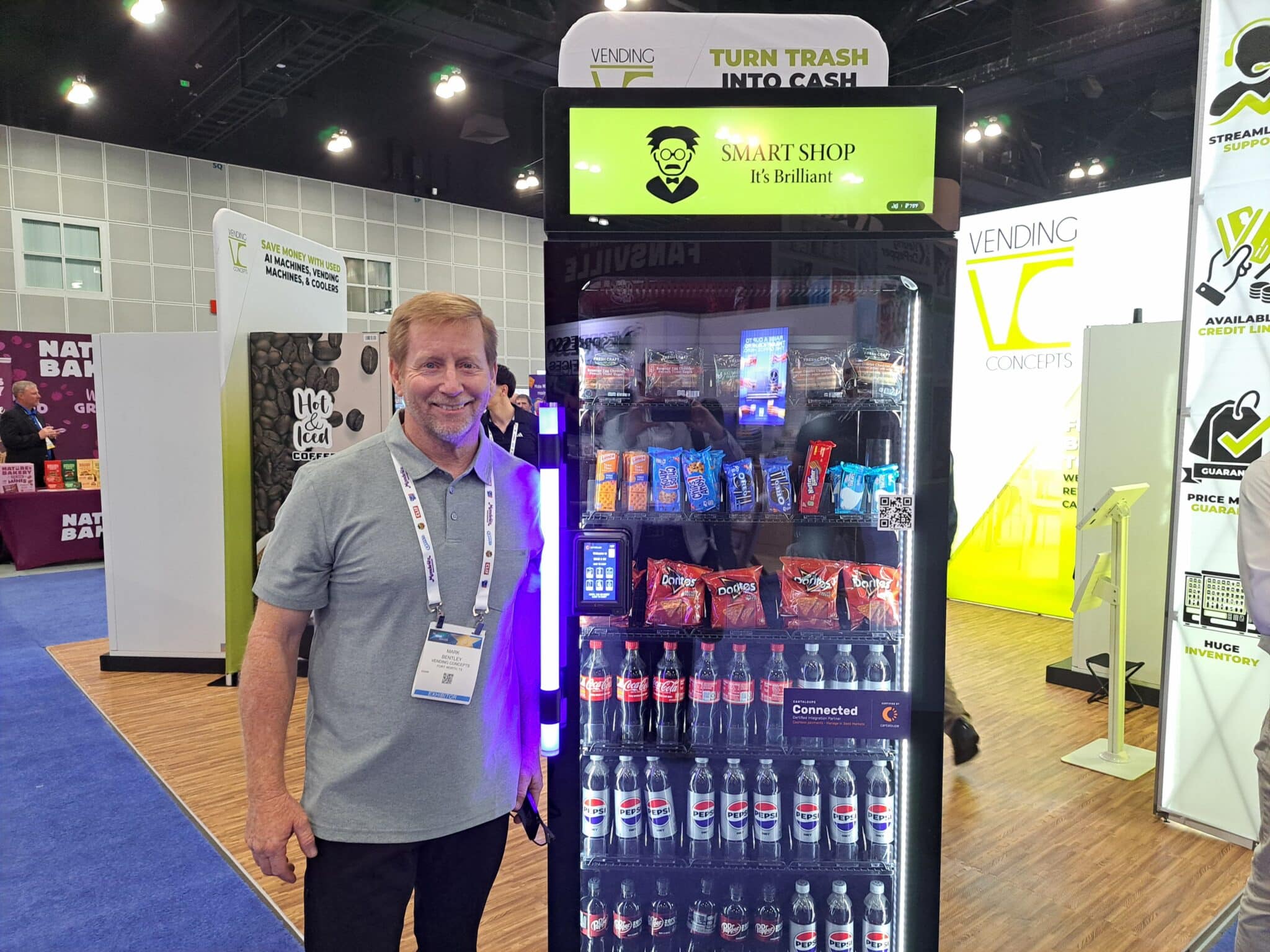 - Mark Bentley introduces the VRK AI Smart Kiosk at the Vending Concepts Inc. exhibit.
