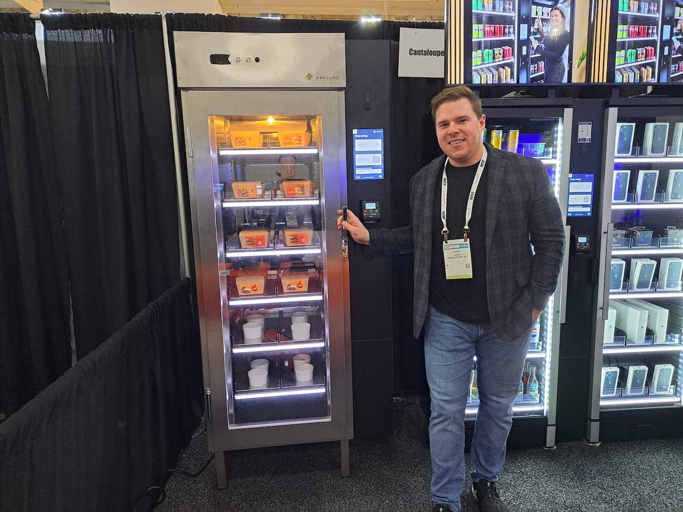 - Tony Danna presents the Smart Store Hot Hold merchandiser at the Cantaloupe Inc. exhibit.