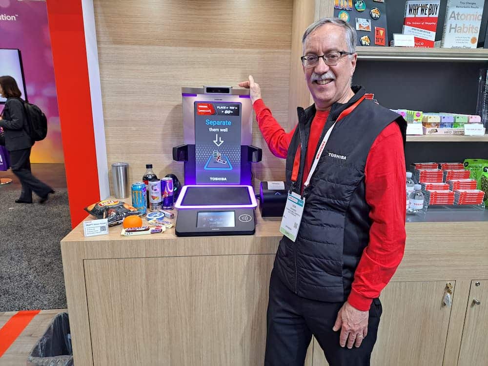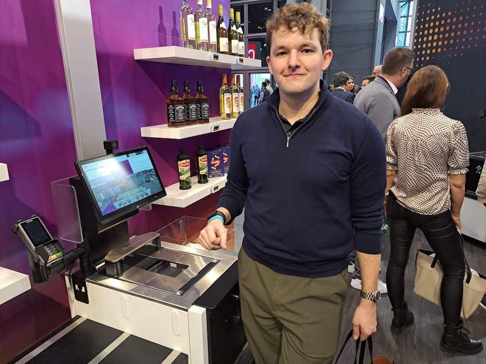- Richard Lawler presents the product recognition technology at the Diebold Nixdorf exhibit.