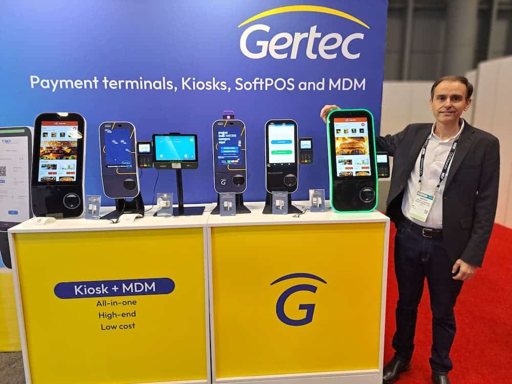 - Mateus Larrabure introduces retail kiosks at the Gertec exhibit.