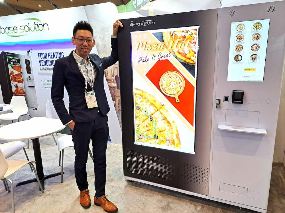 - Kevin Liao introduces the Hot Meal Station vending machine at the ibase solution exhibit.