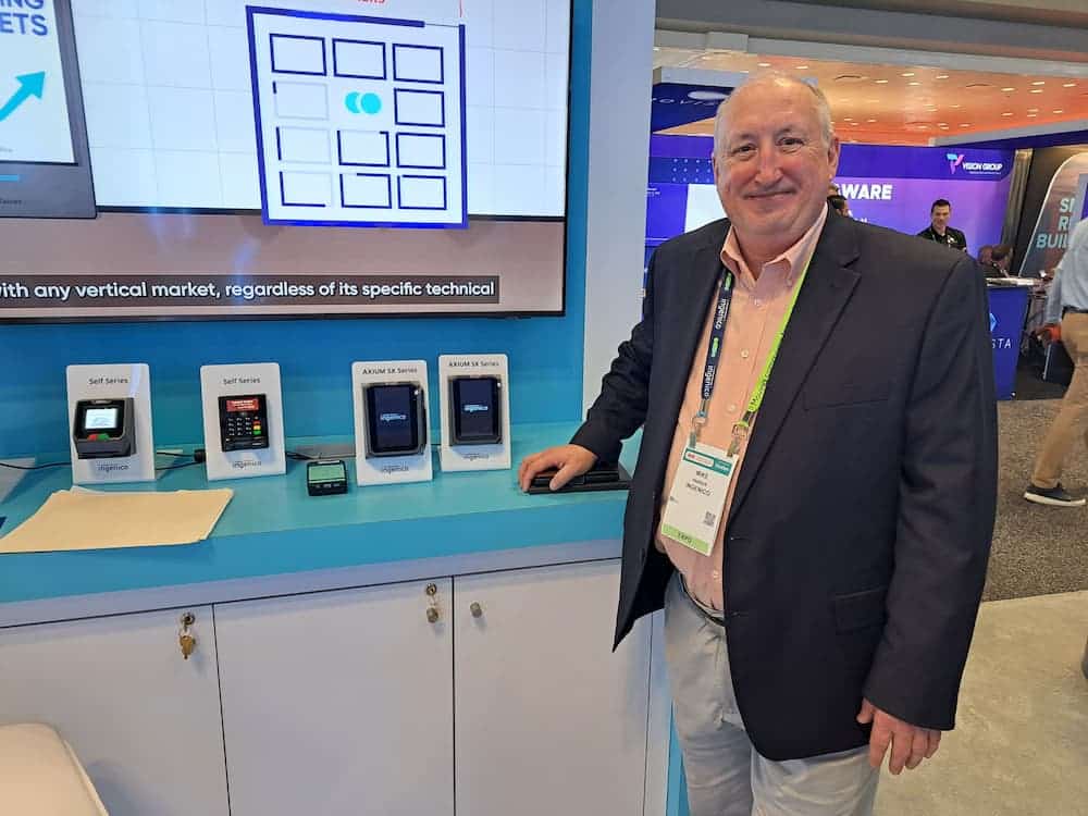 - Mike Parker demonstrates the Axium SX payment platform at the Ingenico exhibit.
