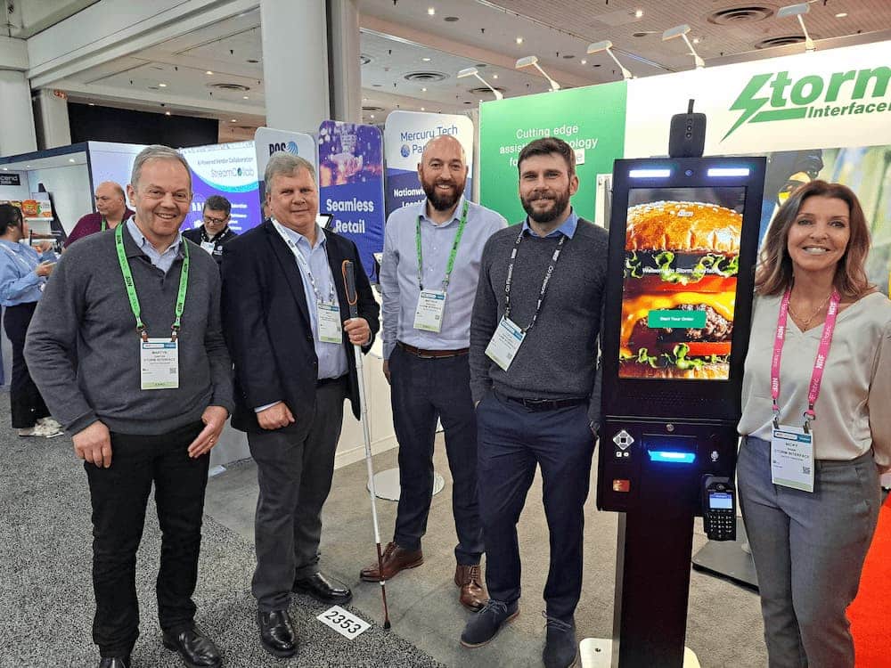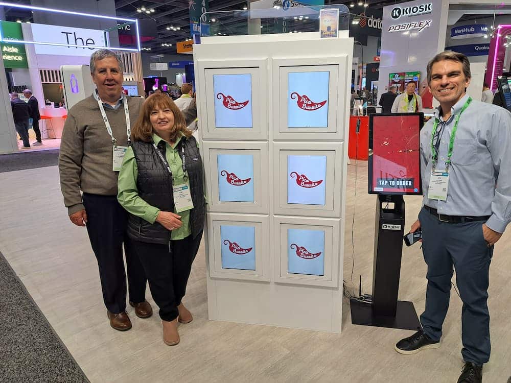 - Joe Scutellaro, Kim Kenney and Jed Sullivan present food pickup lockers at the Kiosk Information Systems/Posiflex exhibit.