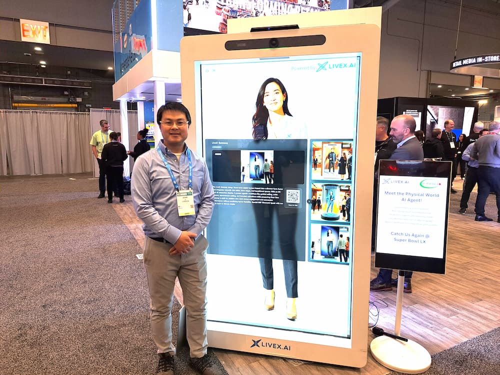 - Jerry Li demonstrates the virtual agent at the Livex.ai exhibit.