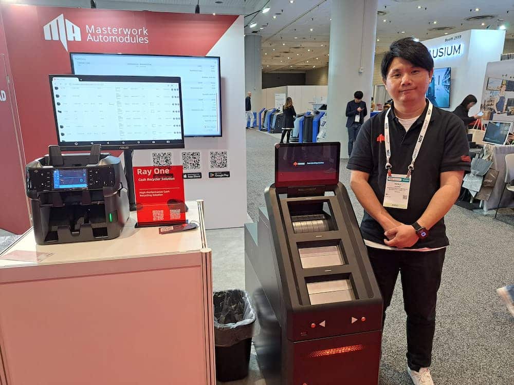 - Kenji Huang presents a prototype for a new cash recycler at the Masterworks Automodules Tech Corp. exhibit.