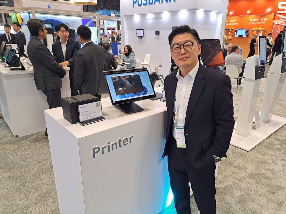 - Steve Kwon presents the Forged printer at the POSBank exhibit.