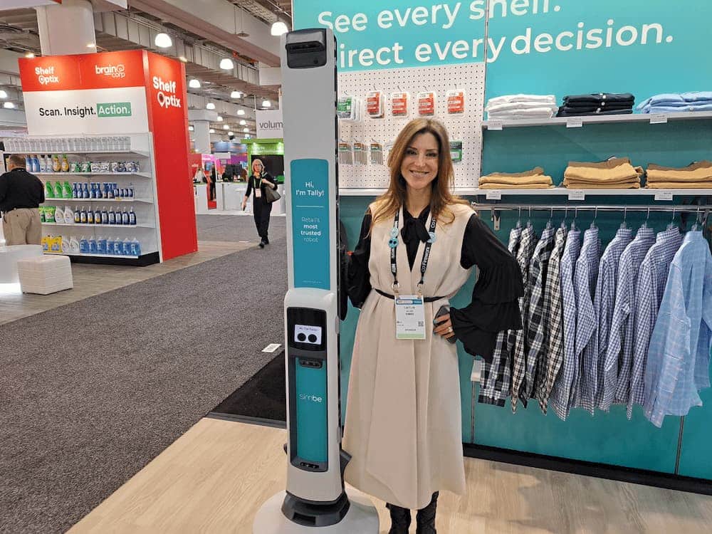 - Caitlin Allen introduces the Tally 4.0 robot at the Simbe exhibit.