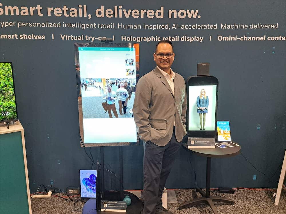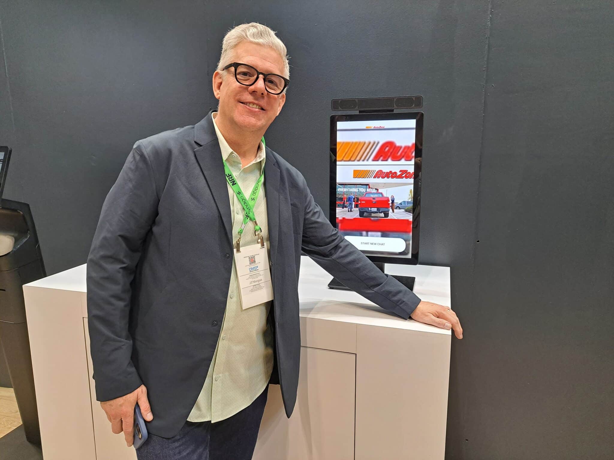 - Ken Froese presents the virtual interactive brand ambassador at the Star Micronics exhibit.