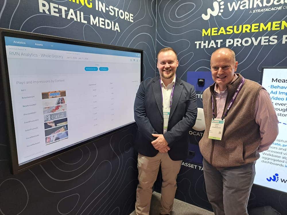 - Bjorn Sjolund and Larry Payne present the Walkbase wave sensor solution at the Stratacache exhibit.
