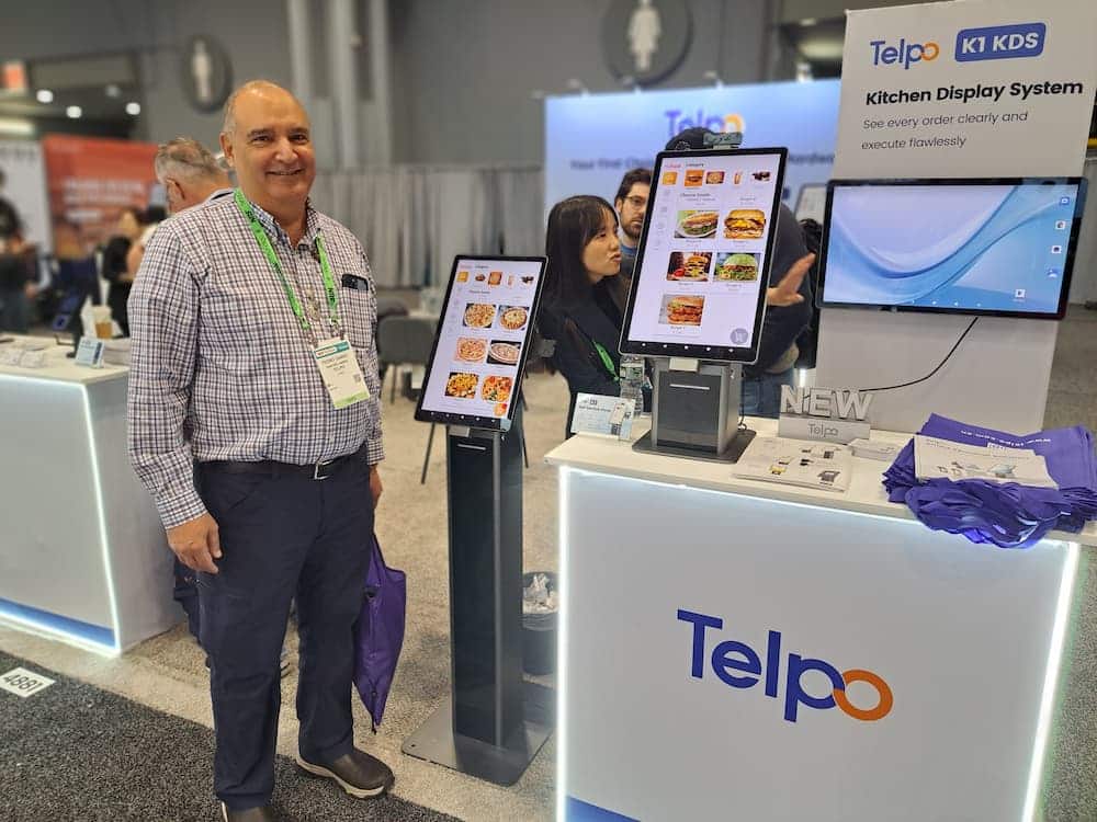 - Pedro Sanchez presents the Telpo self-serve kiosk.