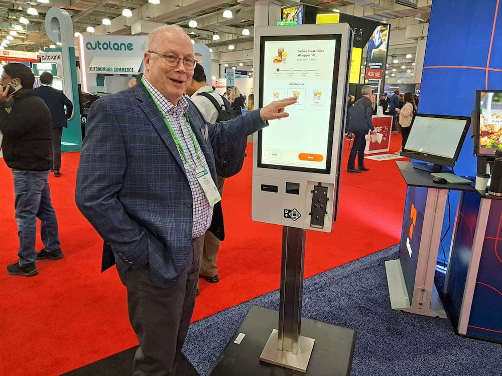 - Paul Burchard demonstrates the Tillster self-order kiosk.