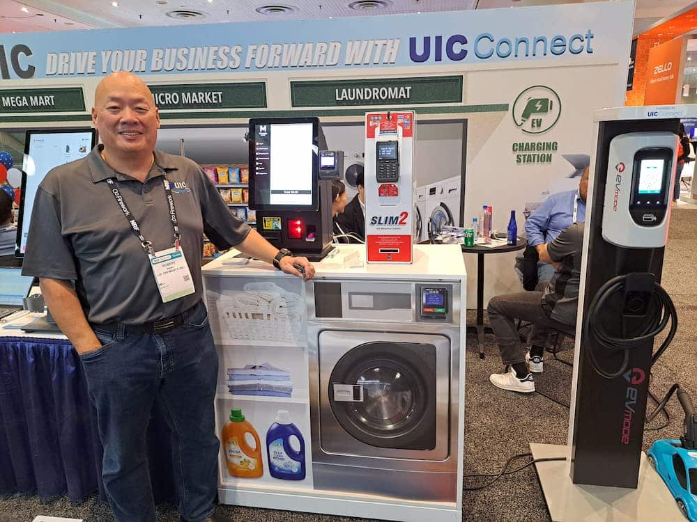 - Robert Wang presents connection and payment services at the UIC Connect exhibit.