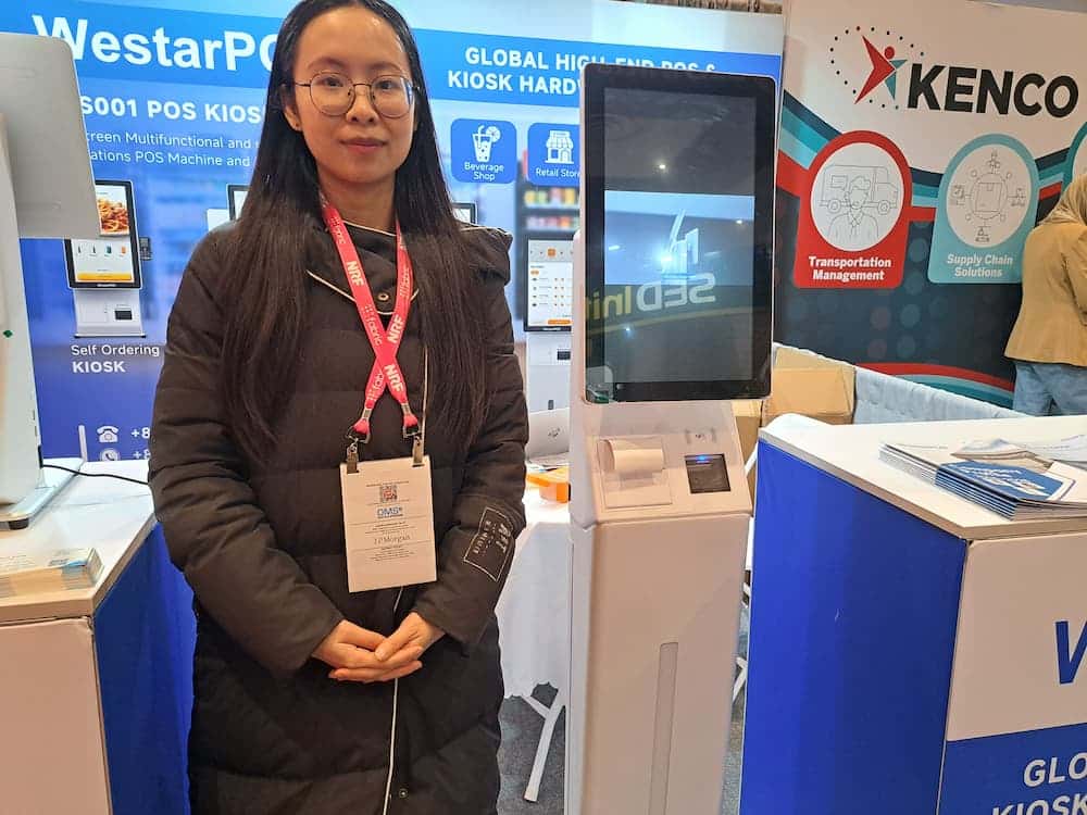 - Lori Leung introduces the CRS001 POS kiosk at the WestarPOS exhibit.
