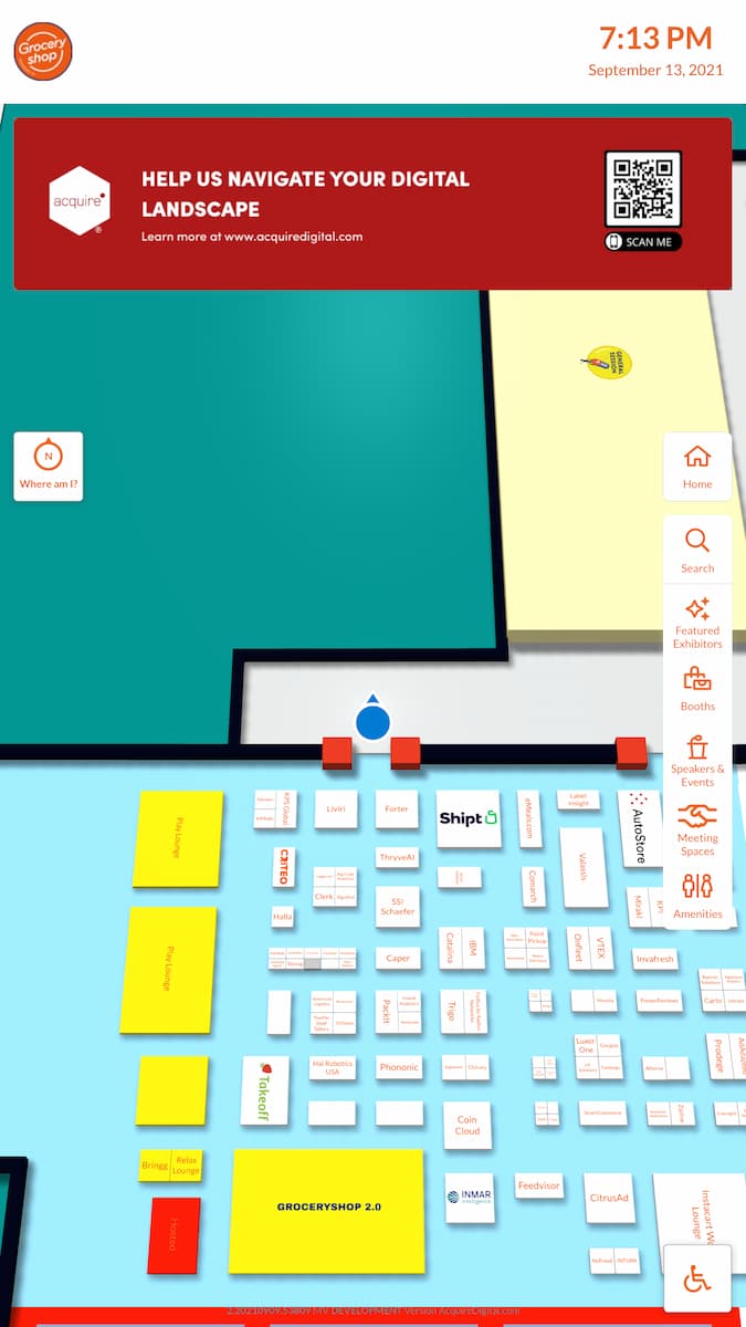 Las Vegas, NV, September 2021 – Acquire Digital has announced the sponsorship of a digital wayfinding and directory solution for the upcoming Groceryshop tradeshow. Acquire Digital’s industry-leading interactive wayfinding and indoor navigation platform will be used to help the attendees navigate the show, explore events, and find other important show content. The custom mapping software will be available on large format interactive kiosks and within the Groceryshop mobile application and website.