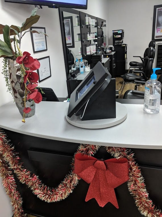 Seva operates microstores in Walmart and for customer check-in you take a number though you use a kiosk to get the number. The kiosk is a tablet which is sandwiched between black particle board on spinning lazy susan (as they say here in the states). I might call it the Black Oreo.